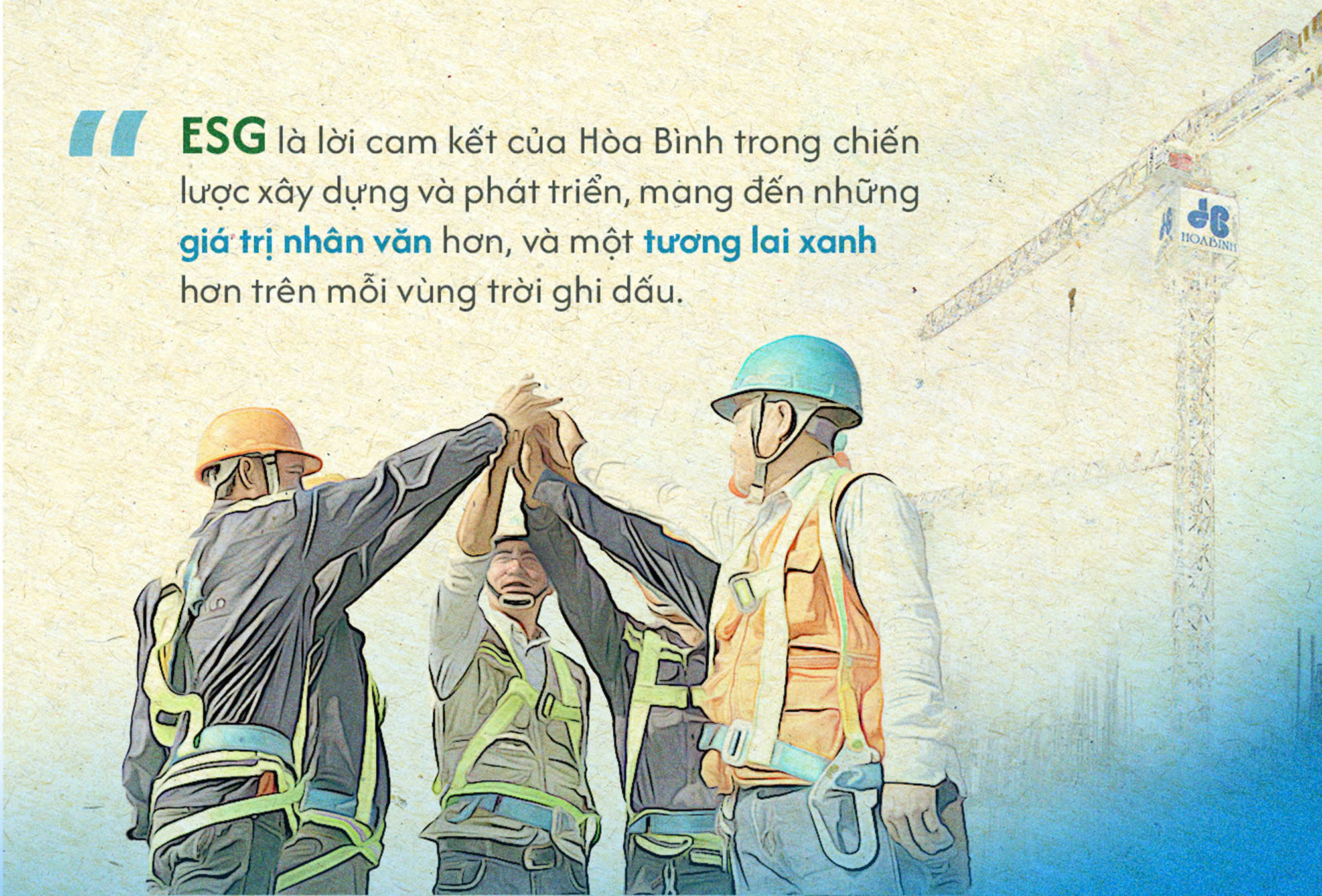 Trên hành trình phát triển, Hòa Bình vẫn luôn học hỏi, mở rộng và áp dụng những công nghệ hiện đại vào xây dựng nhằm mang đến những công trình chất lượng, bền vững và thân thiện với môi trường. Hiện nay, Hòa Bình đang dần áp dụng ESG (Môi trường, xã hội, quản trị) vào lĩnh vực của mình. Với chúng tôi ESG không chỉ là bộ tiêu chuẩn quốc tế hay khung đánh giá của doanh nghiệp, mà đây là lời hứa, lời cam kết của Hòa Bình trên con đường làm nghề.