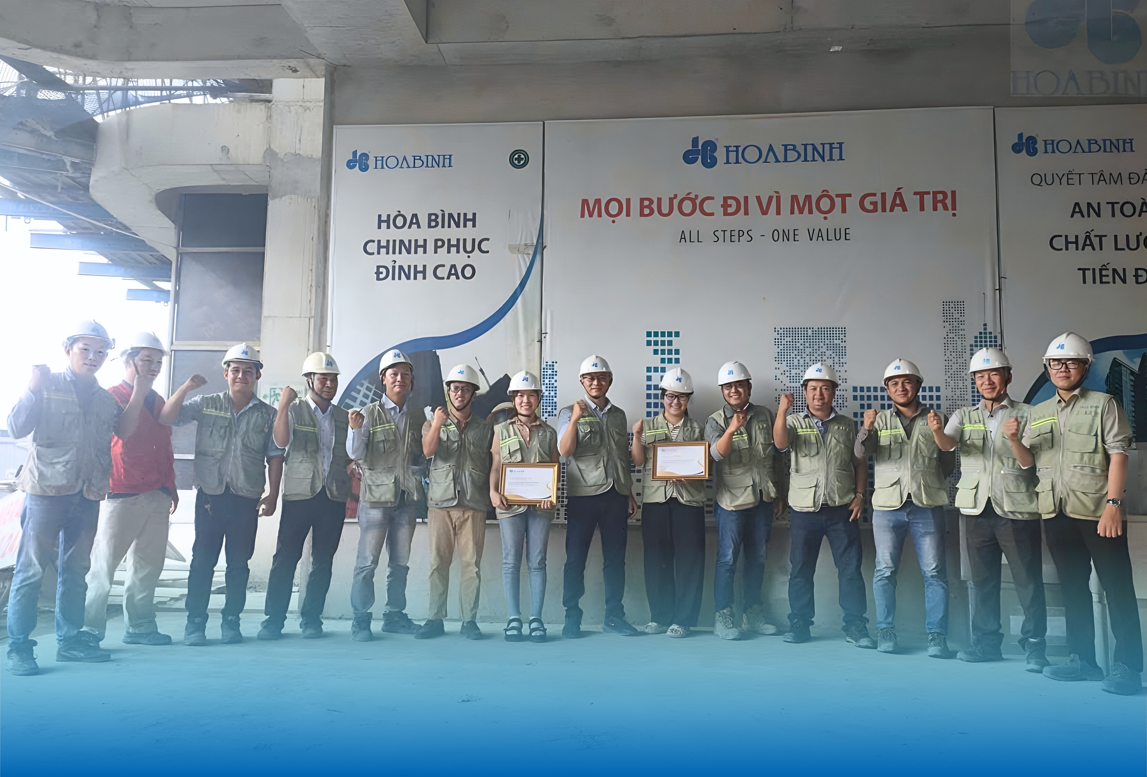 Theo thống kê tại Việt Nam, tỷ lệ nữ giới làm việc tại các công trình chỉ chiếm dưới 3%, nhưng tại các công trình của Hòa Bình, hình ảnh các chị em làm việc tại nơi đây không phải là hiếm. Các chị đồng hành cùng các anh em công trình một cách bền bỉ, tính bằng tháng, bằng năm.